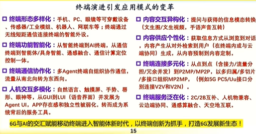 终端功能智能化:从智能终端到AI终端,从通信终端到智能体/具身智能、通感融合、通信计算定位控制一体。