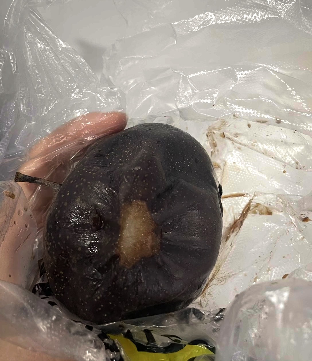 “冻果”不能直接吃,洗净后要放在凉水解冻,东北人把这步叫“缓一缓”(东北话发音huān)。几分钟后,冻果表面会生出一层脆冰壳,轻轻一切就能吃了。