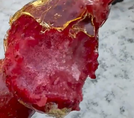 咬开冻得嘎嘣脆的糖壳,露出冰牙的水果,口感如同冰沙,冰冰脆脆,吃起来很过瘾。