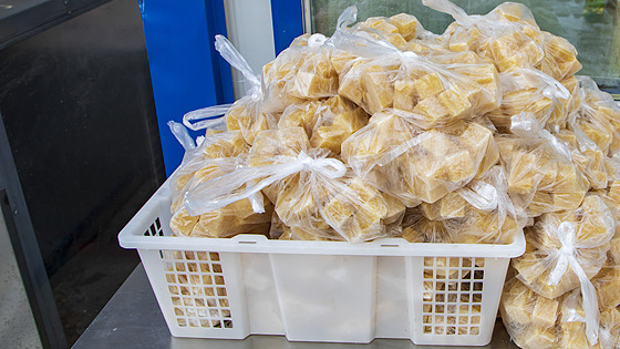 除了“冻果”、冰糖葫芦,东北的冬天还常见冻菜、冻干粮、冻豆腐、冻豆包、冻鸡、冻鱼等等。在街头巷尾,各类东北特色“冻货”应有尽有,吸引市民和游客前来选购。